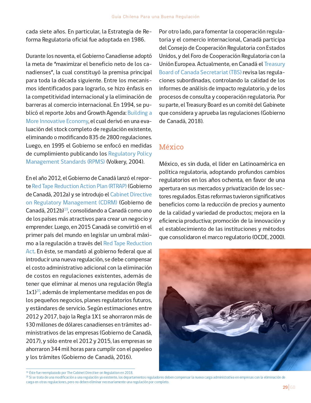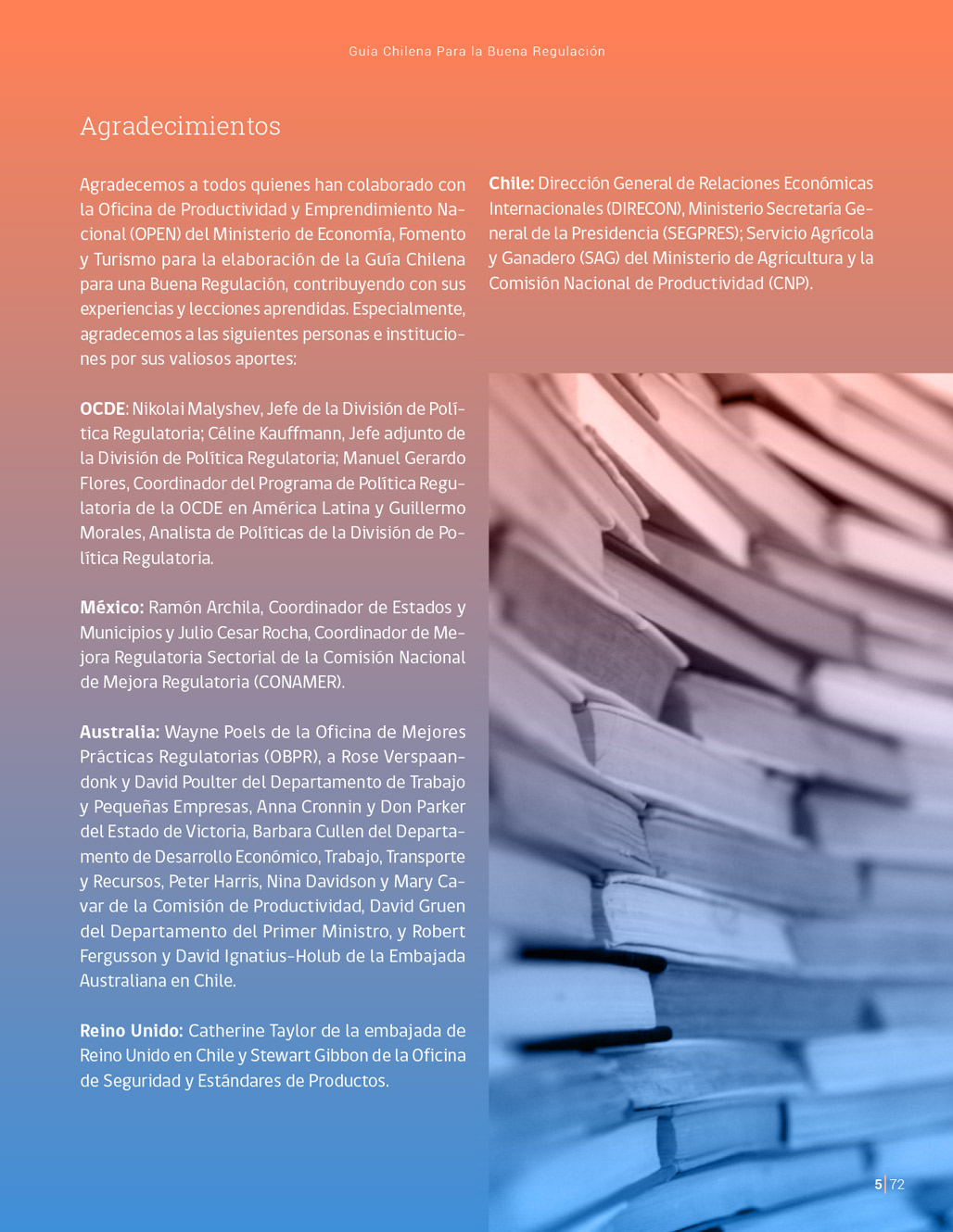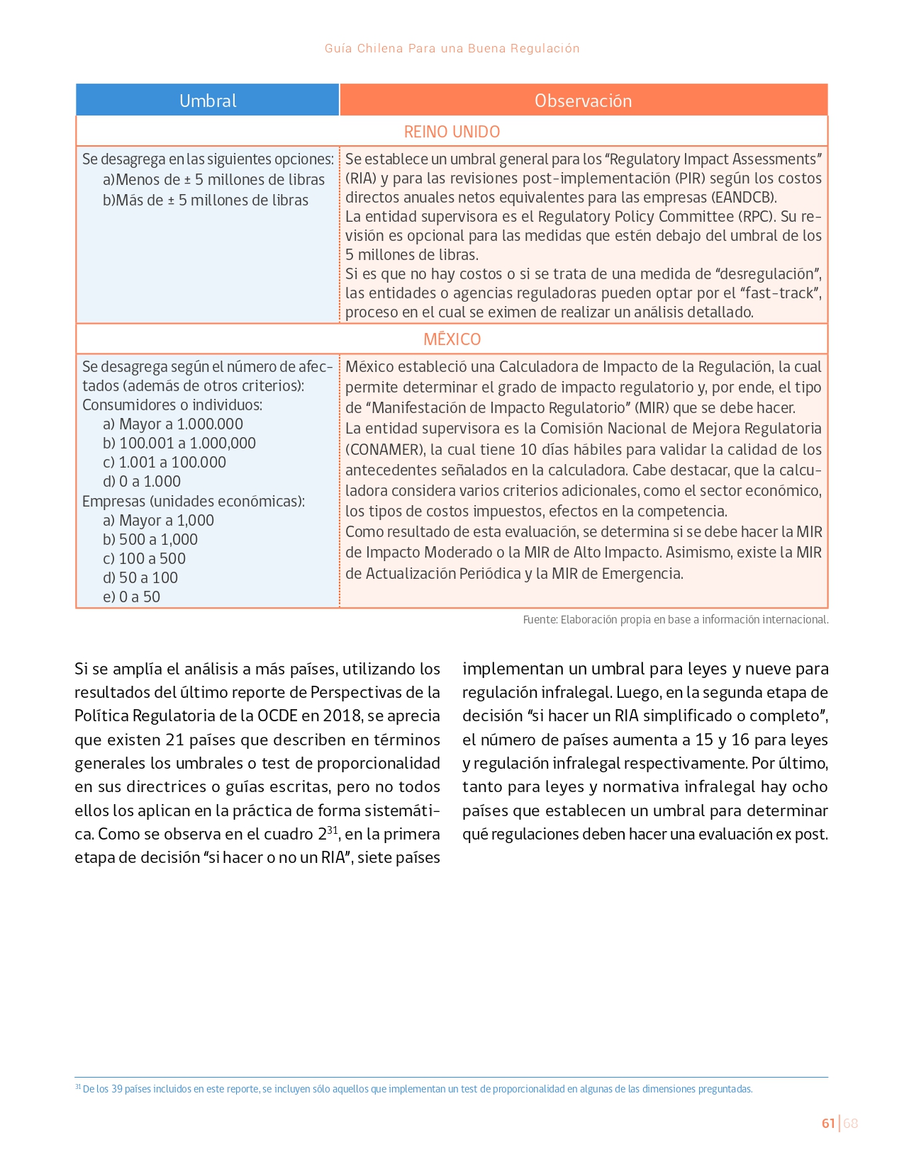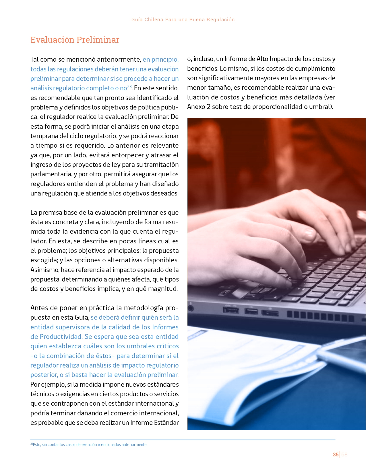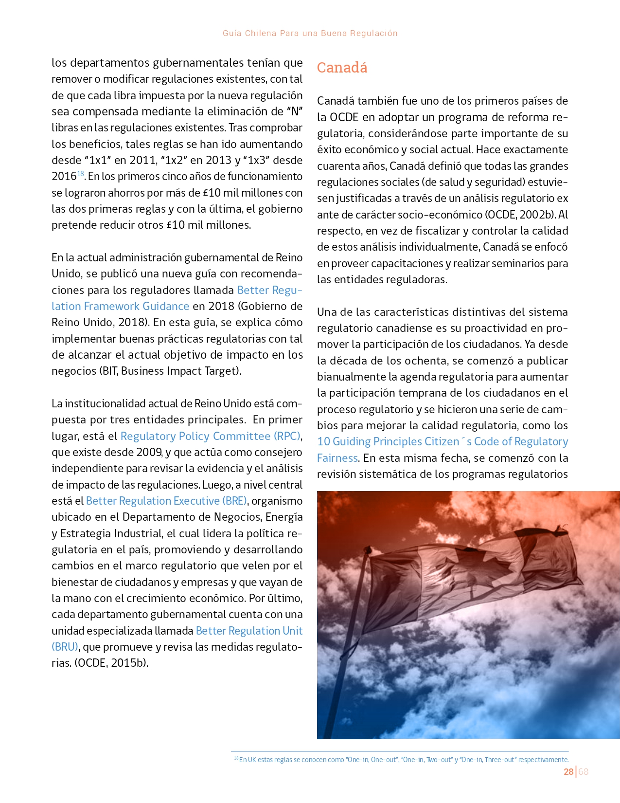 La Guía Chilena para una Buena regulación tiene como objetivo principal ser una referencia para los reguladores en el país, acompañándolos en las distintas etapas del proceso de creación de nuevas regulaciones. En ésta, se propone un proceso regulatorio transpartente que asegure la calidad de nuestro marco normativo, y dónde se releve la importancia de contar con una regulación inteligente. A través del enfoque propuesto, se promueve un análisis integral e imparcial que considera los aspectos económicos, sociales y medioambientales, evaluando a su vez, la efectividad y consistencia de las regulaciones en el tiempo. De esta forma, se evita que existan regulaciones innecesarias y costosas, las cuales no cumplen con los principios de proporcionalidad y eficiencia.